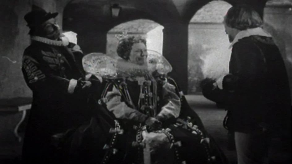 Elizabeth I holds an audience with Francis Bacon and William Shakespeare